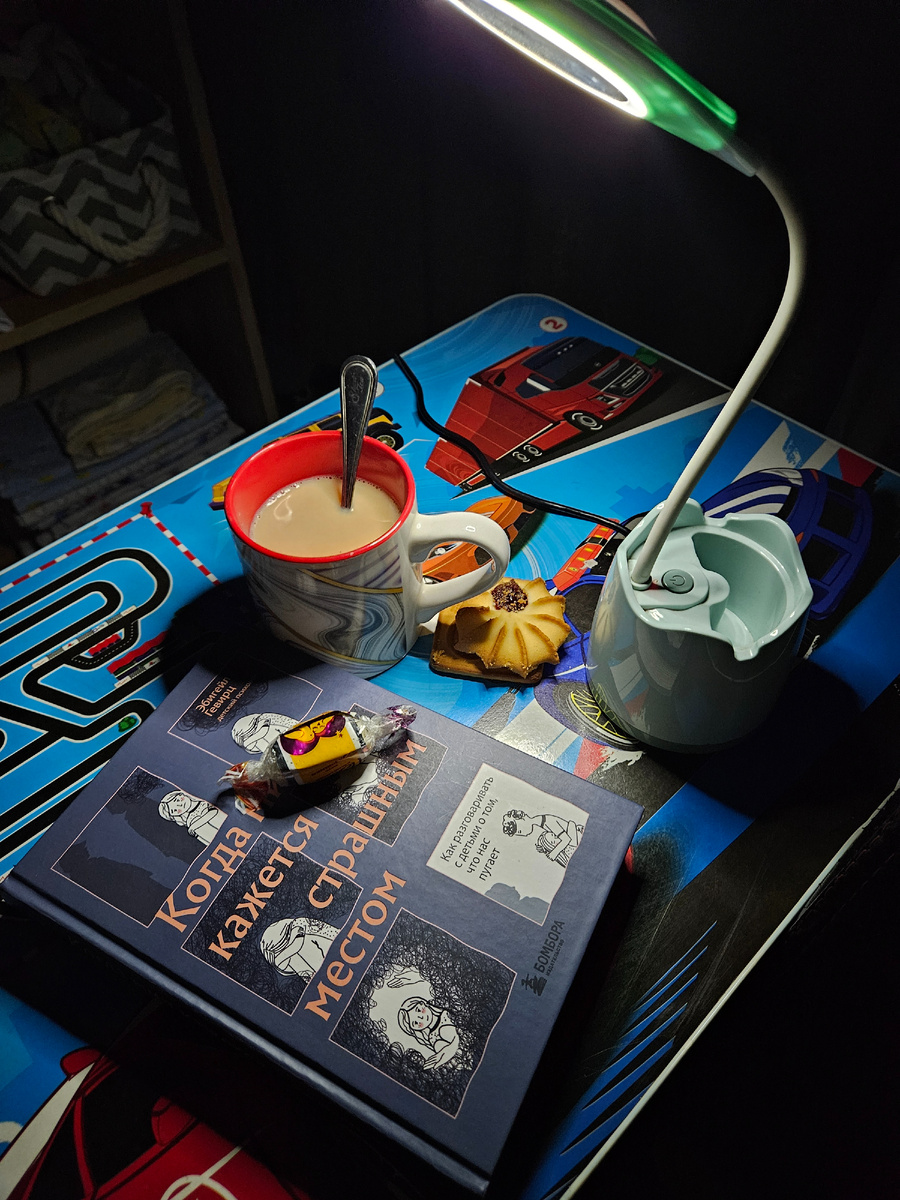 Книга нудная, я долго не могла её дочитать. Но хочу поделиться инсайтами. 1. Возраст 6-11 лет - это время естественной повышенной тревожности у детей, и пик её приходится на возраст около 10 лет. 2. Обсуждая тревожные ситуации, в первую очередь нужно собрать информацию о том, что уже знает ребёнок, чтобы не забежать вперед и не рассказать лишнего. (Например: говоря об урагане, рассказываем о его причинах, но не о смертности или количестве жертв). 3. Чтобы ребёнку было проще говорить о своих сложных чувствах, встаньте с ним бок-о-бок (Например: прогулка, езда в машине). Детям легче обсуждать их не глядя прямо в глаза. 4. Если сказать сыну, что его страх не обоснован, это не избавит его от переживаний. Это просто покажет мальчику, что родитель не признает и не считает важным его беспокойство. Признавая его чувства, вы показываете, что у него всё хорошо и никто его не осуждает. 5. Папа помнит, как его собственный отец смеялся над ним из-за его испуга и говорил ему: "Да перестань уж
