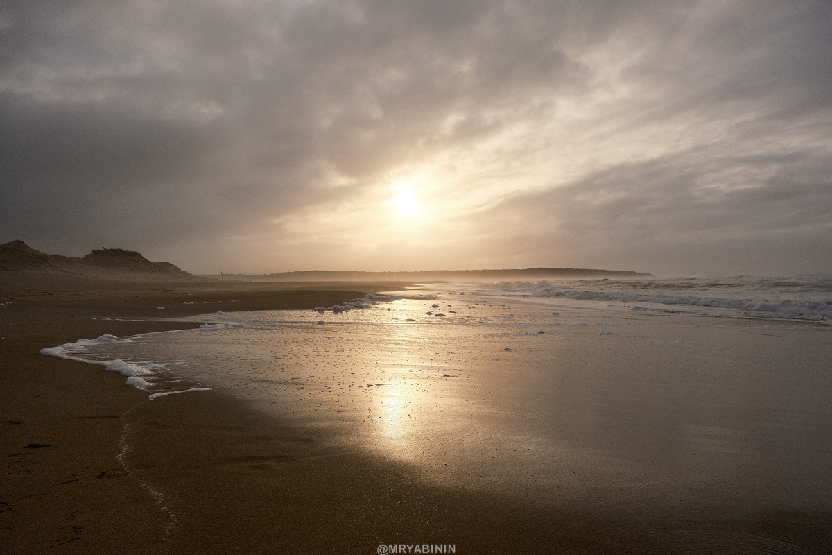 Несезон на Атлантическом побережье Франции отличается тем, что все курортные зоны вымирают от слова совсем. Зато это отличная возможность прогуляться по пляжам, когда на горизонте не видно ни одного отдыхающего или загорающего. А еще эти "нормандские" туманы добавляют атмосферы. Самое оно для прогулки. В путешествии на кемпере у зимы есть еще одно преимущество – если парковки не имеют ограничений по высоте, что стало повсеместно применяться в виде П-образных арок, то скорее всего парковка будет пустой и бесплатной, а еще никак не ограничивать пребывание на них автодомов, которые летом гоняют, чтобы не вставали надолго. Я уже не вспомню где точно располагалось это местечко. То ли Бретань, то ли Земли Луары, а может и вообще в Аквитании, в Бискайском заливе. Помню, что заехали утром после ночевки где-то на другом пляже и пошли гулять вдоль моря. Вот это я понимаю путешествие, когда ты никуда не спешишь, а можешь себе позволить просто пройти вдоль моря. В папках из путешествия на автодоме