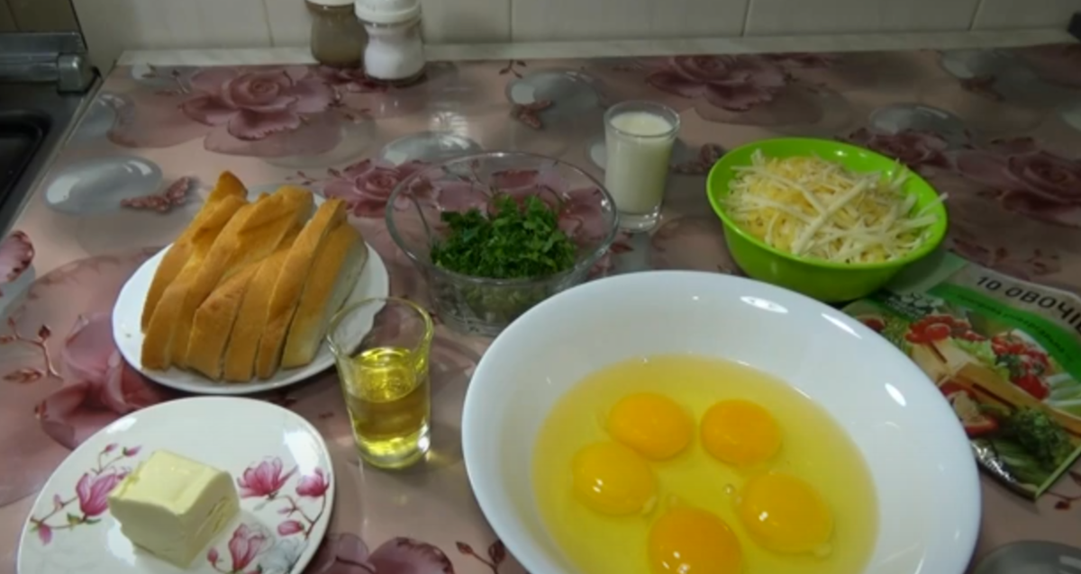 Привет, друзья! Сегодня я поделюсь рецептом завтрака, который всегда спасает меня по утрам. Представьте себе: хрустящий хлеб с нежным сыром и воздушными яйцами — идеальный завтрак, который никого не оставит равнодушным! Этот рецепт особенно хорош тем, что он быстро готовится и идеально подходит для всей семьи. Блюдо получается невероятно вкусным и сытным, а его приготовление займет всего несколько минут. Давайте начнем готовить вместе! 1. Подготовка яичной смеси Сначала нужно подготовить яичную смесь. В миске разбиваем 5 яиц и добавляем к ним молоко, немного универсальной приправы и часть мелко нарезанной зелени. Вместо соли можно использовать приправу, если она уже содержит соль, чтобы придать блюду насыщенный вкус. Все ингредиенты хорошенько взбиваем венчиком до однородной массы. 2. Подготовка хлеба Пока яйца готовятся, займемся хлебом. Ломтики хлеба нужно разрезать пополам, чтобы получились небольшие кусочки. Это поможет улучшить текстуру блюда и гарантирует равномерное приготовле