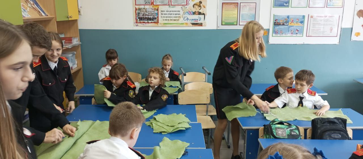 Волонтерами Анапского отделения Союза казачьей молодёжи Кубани МБОУ СОШ № 16 был проведён мастер-класс по изготовлению комплектов сухого армейского душа, в котором приняли участие казачата 1 «Г» и 1 «Д» классов. Сухой душ – это средство, важность которого в полевых условиях трудно переоценить. Это простой, но очень необходимый бойцам набор, состоящий из специального материала, пропитанного гипоаллергенным гелем, и полотенца. На фронте, когда негде и нечем помыться, бойцов выручают именно такие наборы. Руками ребят было изготовлено 64 комплекта сухого душа, которые будут переданы нашим бойцам в зону СВО.
