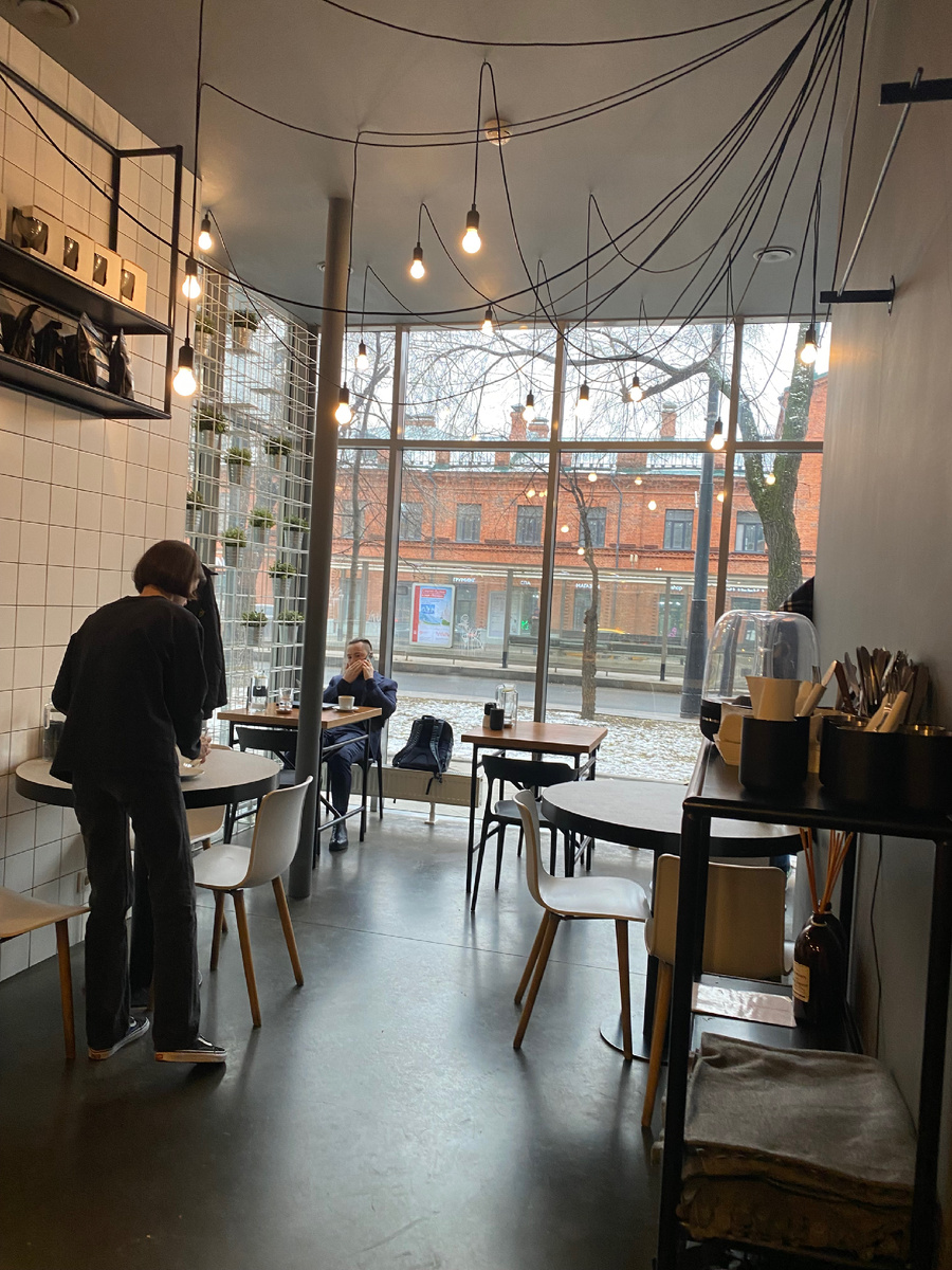 Уютное кафе Table на Лесной - прекрасное место для завтрака. Но цены тут, как и везде на Белорусской, кусачие. Ооочень хотелось приятно покушать. Зашел Бамбл с апельсиновым соком. Большая чашка горяченного (но есть и холодный) напитка из свежевыжатого апельсинового сока с кусочками мякоти, сдобренного крепким ароматным кофе. Красивая подача в чашке на пробковой подставке. Оранжевая веселая пенка. Много и вкусно. И с витаминами. 5+ Был взят Омлет из двух яиц с сыром. Большая тарелка, хорошая порция, немного молока, потому омлет крепкий, яичный. А внутри горяченный оранжевый тянучий сыр. Сытно, горячо, вкусно, много. 5+ Крайне удачный выбор места. Удивительная находка для завтрака или обеда. Многие приходят сюда работать с ноутами. Но вот цены не очень душевные, хотя бывают полпорции, что может позволить снизить расходы. Завтрак обошелся в 710 руб. Но это ресторанное качество, уютный интерьер, тепло, светло, музыка играет. Отличное место для не очень частых походов.