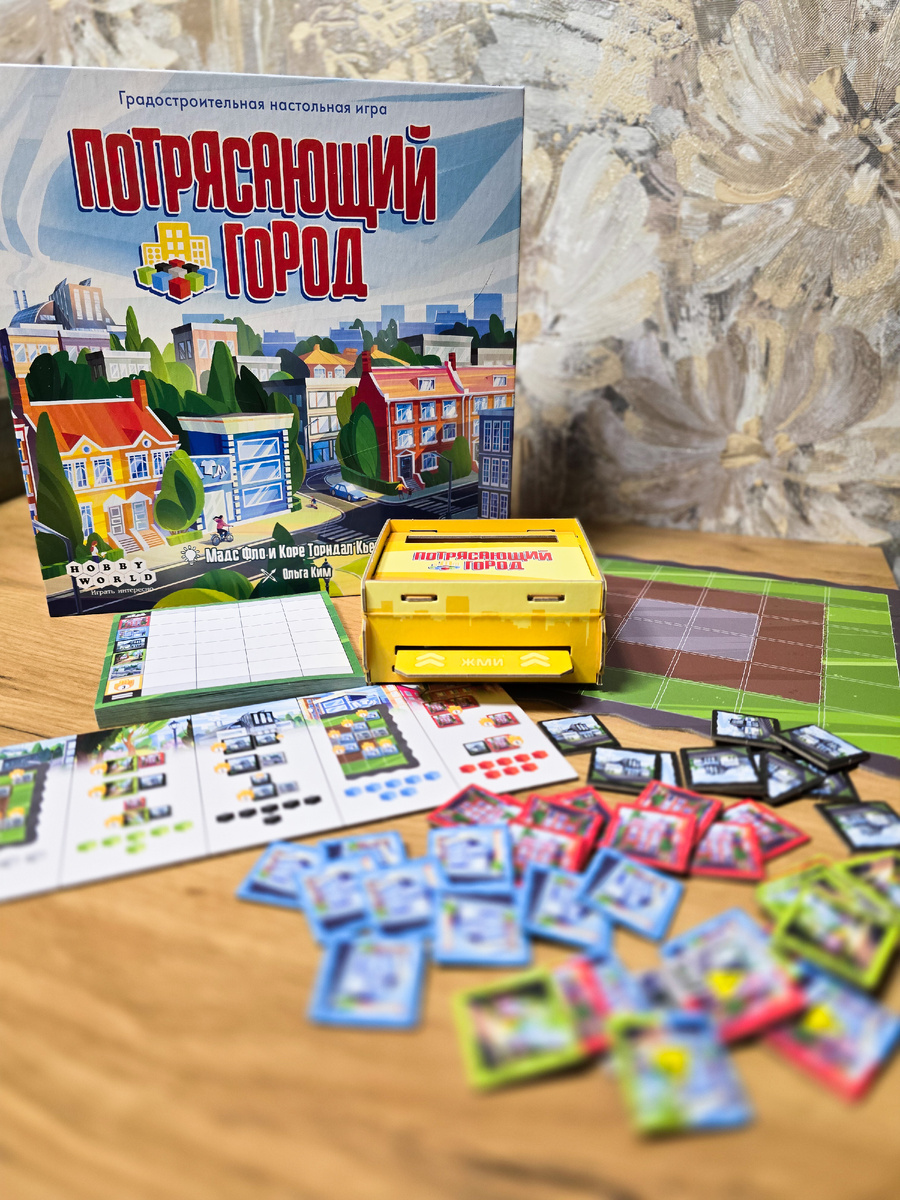 Количество игроков: 1-4 игрока Возраст: 10+ Продолжительность: 40 минут Весь смысл этой настолки завязан на том, чтобы строить планы, которые каждый ход рушатся из-за беспощадного рандома. Вы мечтаете создать идеальный город? Уютный парк рядом с жилыми кварталами, магазины в центре.. Забудьте! Здесь ваши идеалы — только платформа для случайности, которая правит всем. Кубомешалка, будто маленький злой гений, безжалостно высыпает кубики, определяя, какие здания вы сможете построить. Хочется парк? Вот вам три завода! Мечтаете построить дорогу? А выпали жилые кварталы! Но, странное дело, вместо раздражения появляется азарт. Игра словно шепчет: «А сможешь справиться с этим хаосом?» И вы продолжаете. Лихорадочно размещаете жетоны, пытаетесь соблюсти правила — заводы у дороги, магазины в центре, парки вдали от фабрик — и при этом сохраняете хоть какую-то логику в застройке. Сам процесс игры настолько увлекательный, что все забывают о времени. Кубомешалка вызывает искренний восторг, особе