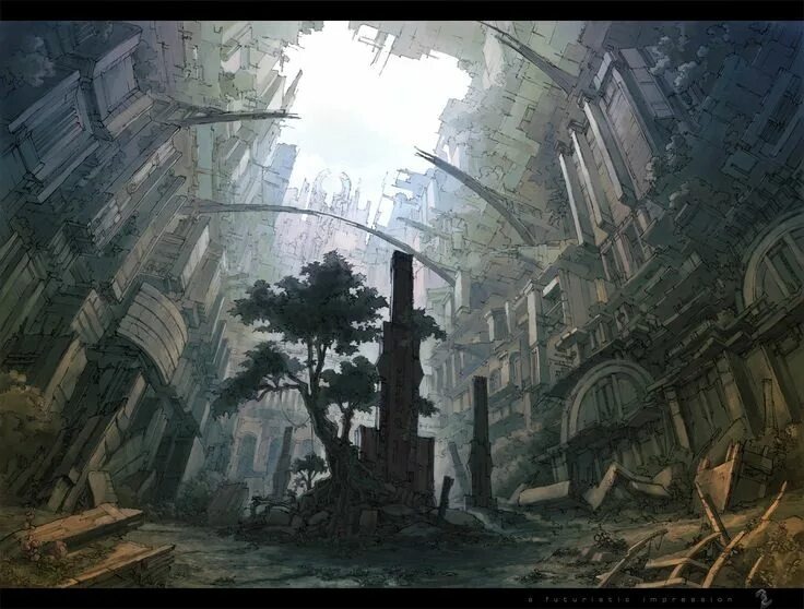 Мы остановились перед самым входом в станцию, а точнее перед двумя колоннами, что остались от входа. Идя по руинам, я ощущал, что был здесь не раз, но в тоже время место было мне совершенно не знакомым. Мы вышли на огромную площадку в центре руин. Вероятно это было помещение со звездой, которая при взрыве раздвинула все в сторону.