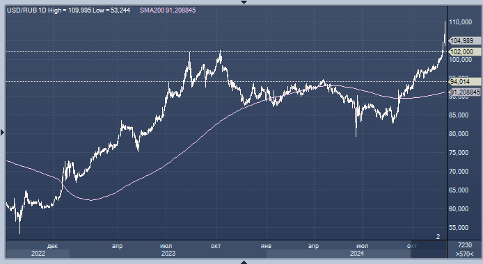 Он считает, что эффект переноса курса осложнит достижение таргета по инфляции в 2025 году. ВТБ пока прогнозы по курсу на 2024 и 2025 годы не менял.