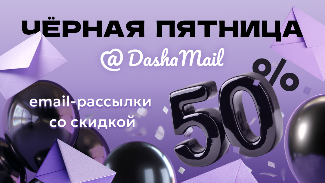 Чёрная пятница в DashaMail! Запустите рассылки со скидкой 50%