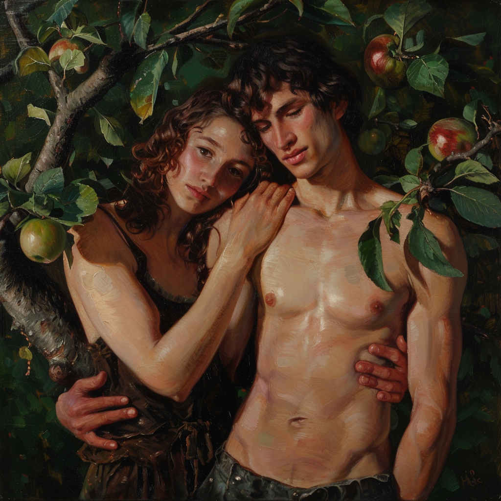 Библейская версия происхождения человечества утверждает, что первая пара людей — Адам и Ева — была создана Богом и поселена в Эдемском саду. Эта история послужила основой для многих религиозных концепций, но также сказался её устойчивый образ в мировой культуре. Согласно этому повествованию, два человека оставили после себя огромное потомство, которое впоследствии сформировало всё живое человечество.