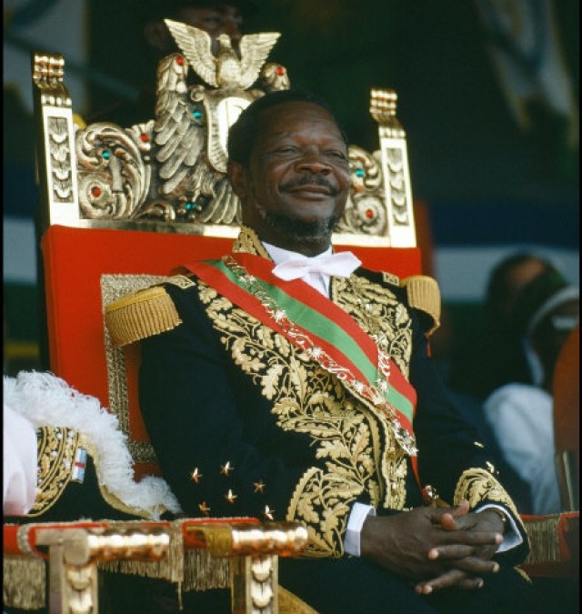 История Жана-Беделя Бокассы началась трагически. В шесть лет он остался сиротой: отца расстреляли французские колониальные войска, мать покончила с собой. Родственники, взявшие мальчика на воспитание, мечтали сделать из него священника. Судьба распорядилась иначе. Бокасса выбрал военную карьеру, служил во французской армии, воевал в Европе и Вьетнаме. После обретения независимости ЦАР в 1960 году его двоюродный брат, президент Давид Дако, назначил его командующим вооруженными силами. Благодарность оказалась своеобразной: в новогоднюю ночь 1966 года Бокасса совершил государственный переворот. В 1977 году Бокасса решил короноваться как император. Церемония, стоившая стране треть годового бюджета (20 миллионов долларов), копировала коронацию Наполеона. Туфли императора, расшитые жемчугом, попали в Книгу рекордов Гиннесса как самые дорогие в мире. Для банкета из Европы доставили 240 тонн деликатесов и 64 тысячи бутылок элитного алкоголя. При Бокассе страна жила по средневековым законам. За