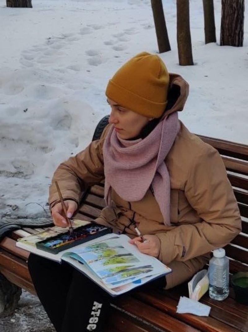 Для многих художников пленэрный сезон оканчивается с приходом холодов, но только не для художников АХП. Поэтому, сегодня для вас обзор кистей для акварельного пленэра от Дарьи Шевченко. Дарья родилась и живёт в городе Рязани. Закончила ДХШ №1 в 2009 году, с 2022 года серьёзно занимается живописью акварелью. По словам Дарьи любовь к природе, которую ей привила красота родного края, а также ростовских степей, выливается на бумагу в виде прекрасных пейзажей. "Пленэр - это совмещение приятного с полезным, когда ты находишься в красивом месте и его же и рисуешь", - говорит Дарья. Всем любителям порисовать на свежем воздухе или в дороге привет! Сегодня я хочу провести для вас обзор кистей для акварели, которыми я лично пользуюсь уже не первый год, и которые хорошо себя зарекомендовали в работе, когда вы не просто на пленэре, а в экстремальных условиях «вне дома», в отеле или в вагоне поезда. 1. Кисть-хейк № 20, короткая ручка Гамма, коза микс. Использую эту кисть как флейц – смачиваю бумагу