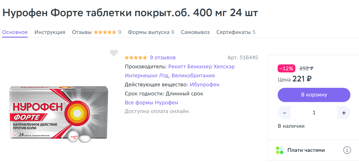 Вот и в этот раз сделала заказ в аптеку, ближайшую к маминому дому, благополучно выкупила, одну пластинку с таблетками Нурофена оставила у мамы, вторую забрала с собой.