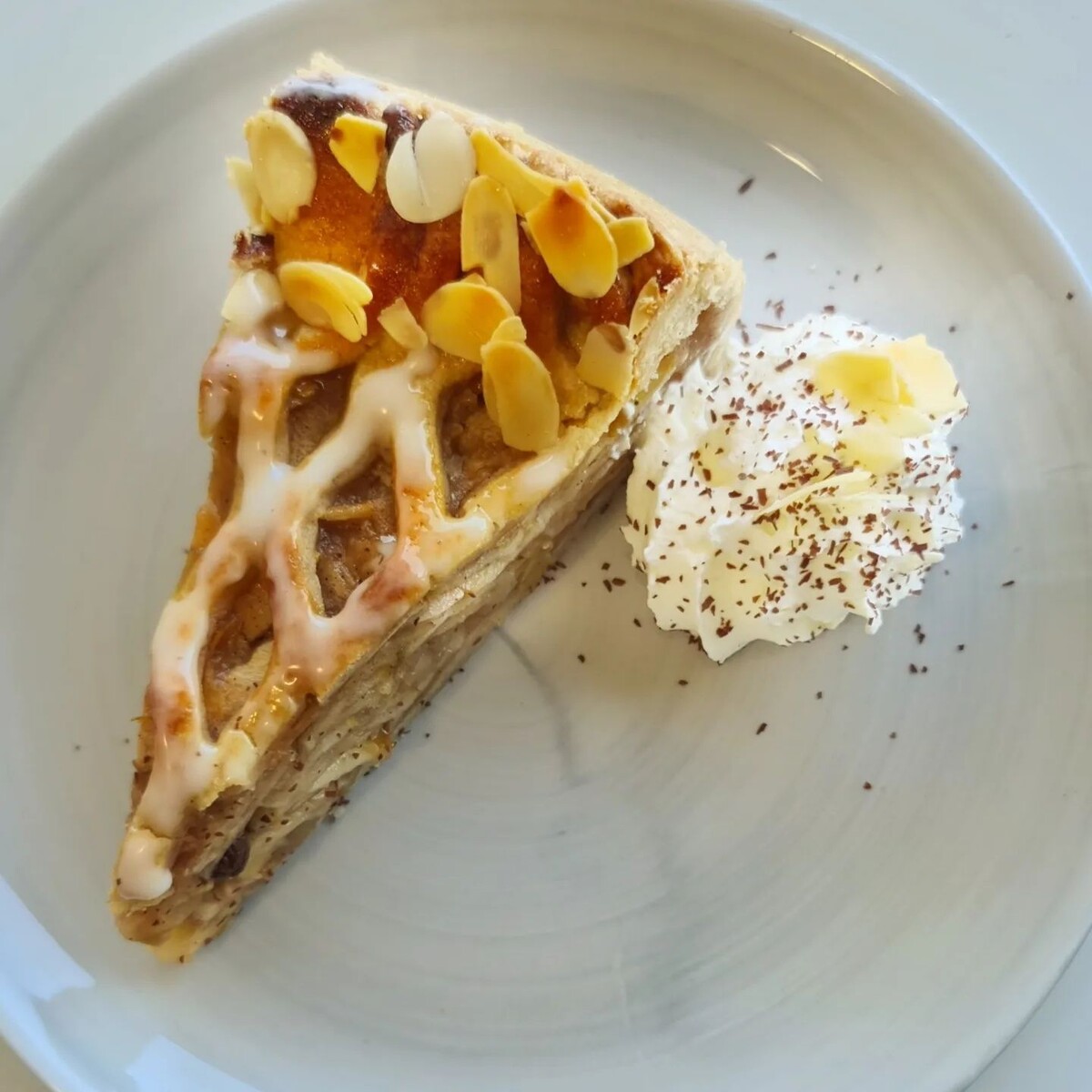 Для песочного теста требуется: Смешайте 1/4 чайной ложки разрыхлителя с мукой. Приготовьте песочное тесто. Для яблочной начинки требуется: Смешайте 50 г порошка для заварного крема с небольшим количеством белого вина. Добавьте в пудинг 1/2 стручка ванили, очищенных от кожуры, 2 чайных ложки корицы, 2 столовые ложки изюма ( маринованного в роме), 50 г измельченного миндаля, обжаренного. Сначала налейте воду с сахаром в кастрюлю и дайте настояться, пока она не станет светло-желтой или слегка коричневатой (карамельной). Не перемешивайте, а просто перемешайте кастрюлю. Разотрите с белым вином, добавьте корицу, изюм и доведите до кипения с добавлением порошка для заварного крема. Предварительно слейте смесь с отложенными ломтиками и хорошо перемешайте. Из песочного теста предварительно испечь основу размером с пирог до золотисто-желтого цвета. Теперь нарежьте полоски на уровне торта. слегка смочите край формы для выпечки, чтобы песочное тесто стояло вертикально. Выложите на дно поджаренн
