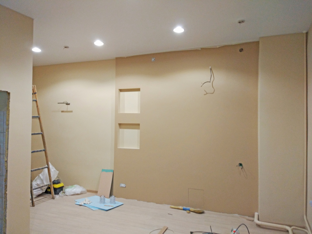 — Стены под покраску: Грунтовка, Выравнивающая штукатурка по сетке, грунтовка, шпатлёвка в 2 слоя «Ветонит LR+», шпаклевка финишная в 2 слоя «Шитрок», последующая окраска стен в 2 слоя.