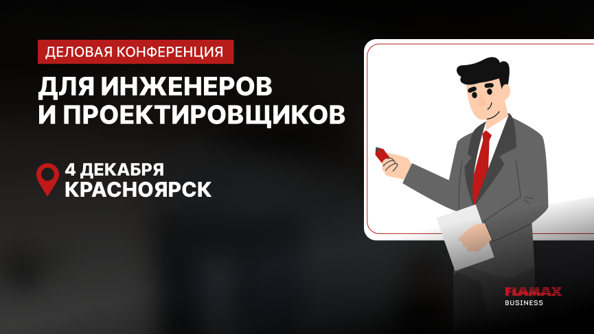 Не упустите возможность зарегистрироваться для участия! Продолжаем сибирское турне и собираем коллег в Красноярске! 4 декабря FLAMAX BUSINESS впервые проведет здесь деловую конференцию для инженеров и проектировщиков. FLAMAX BUSINESS - это инновационная оффлайн площадка, которая уже показала свою эффективность.