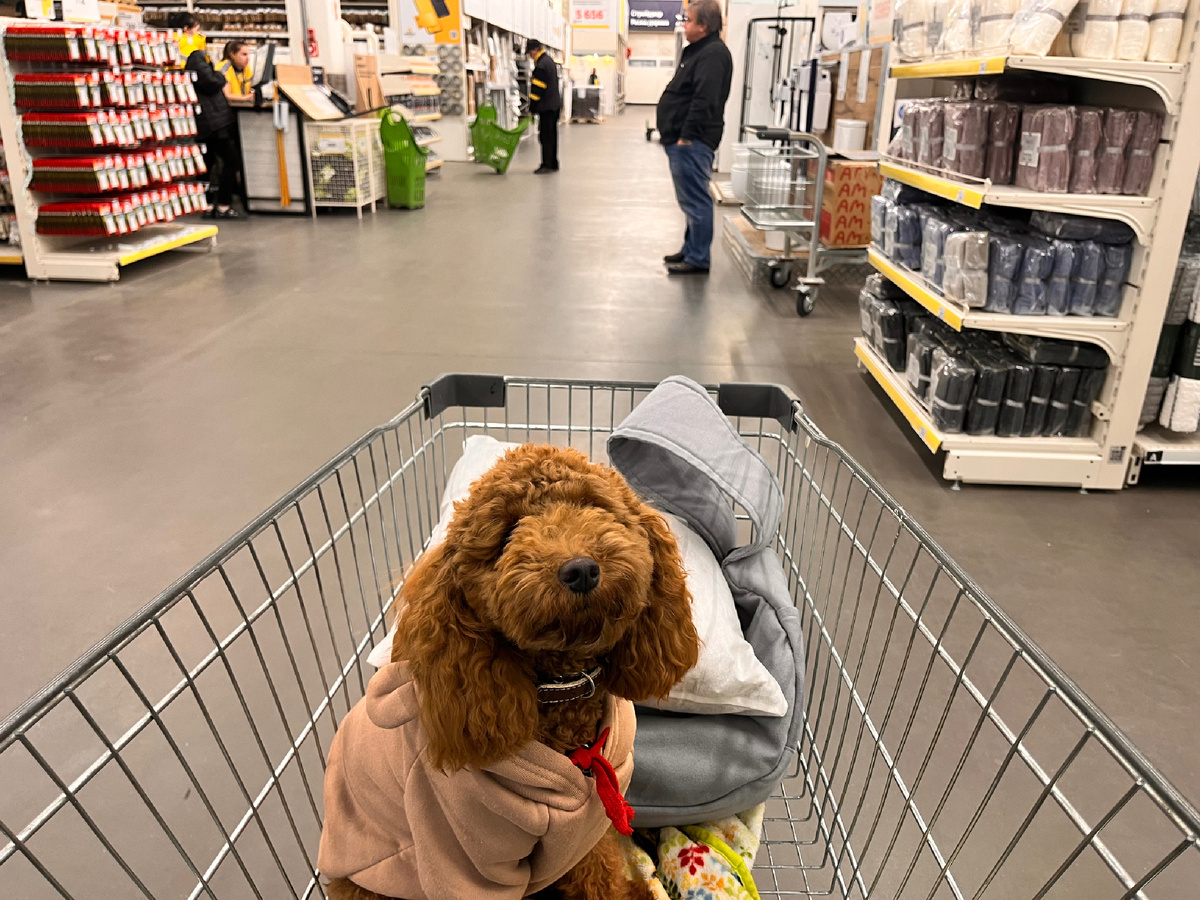 Конечно, мы с Шаней взглянули и на Новогодний ассортимент. Мимо него пройти просто невозможно, такой он красивый и бросается в глаза. А так как Шаня была в костюме оленя (на фото плохо видно, просто поверьте), в этом отделе она смотрелась гармонично.