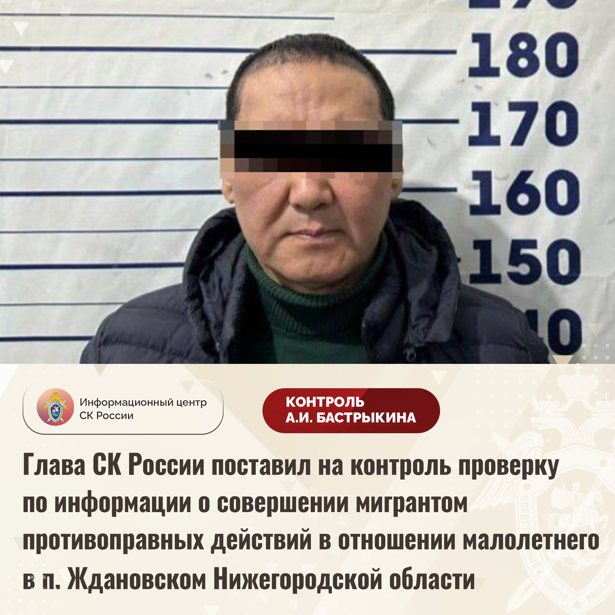 Глава СК России поставил на контроль проверку по информации о совершении мигрантом противоправных действий в отношении малолетнего