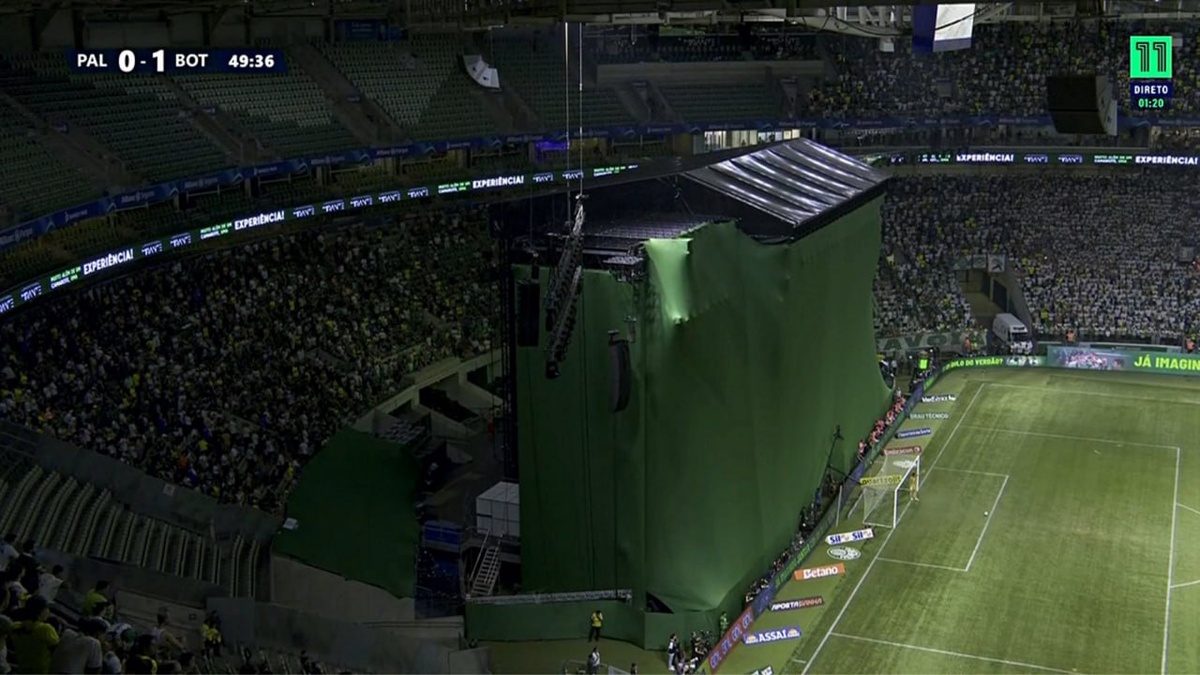 Все из-за концерта местной звезды. Главный матч сезона на домашнем стадионе, но его приходится смотреть на большом экране – суровая и в то же время комичная реальность фанатов «Палмейраса». Коснулось целой трибуны – из-за проблем с организацией. Не успели убрать сцену после концерта – приделали экран, чтобы болельщики все равно пришли Фанаты за воротами увидели 1:3 от «Ботафого» вот так – хотя находились в паре десятков метров от поля. Почти как в кинотеатре! Только болельщики на такое явно не рассчитывали. Прямо перед матчем на стадионе прошел концерт южноамериканской поп-звезды Роберто Карлоса. Конструкцию просто не успели разобрать – и решили проблему установкой огромного экрана, чтобы люди все равно пришли на сектор. Возможно, этим болельщикам повезло больше остальных: не увидели вживую (хотя формально все-таки увидели) первое домашнее поражение с июля – 1:3 от главного конкурента, еще и с красной карточкой своего защитника. Особенно обидно для болельщиков, что теперь «Ботафого» сн