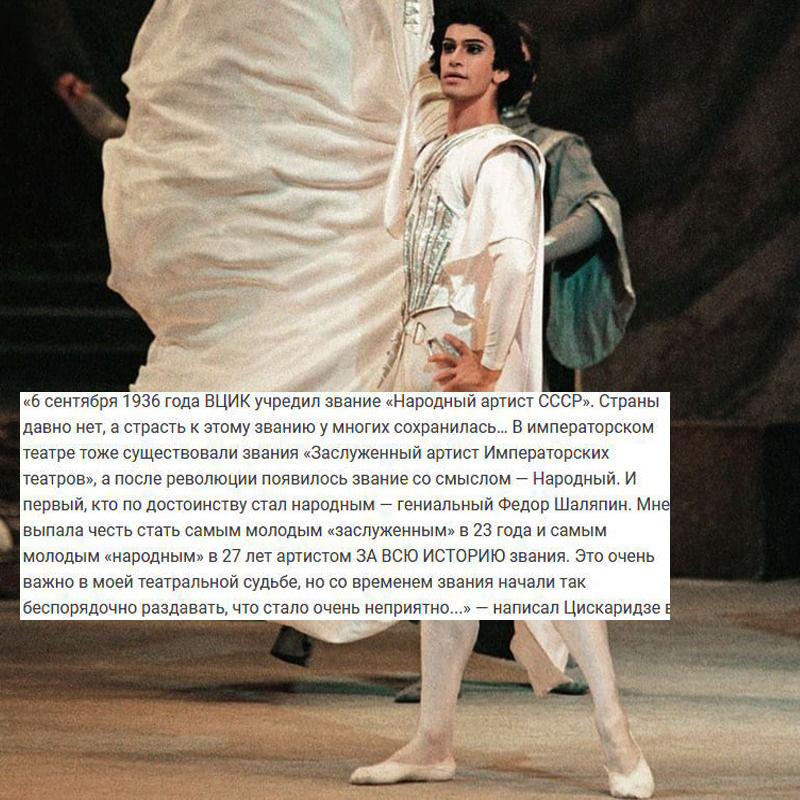 1997-й, после триумфальной победы в Международном балетном конкурсе 23-летний Николай Цискаридзе получает звание «Заслуженного артиста России». Еще четыре года упорной работы и звезда Большого театра становится самым молодым «народным» в нашей стране. Спустя 20 лет легенда русского балета рассказывает, что наблюдать за беспорядочной раздачей званий выше его сил. Своими достижениями (здесь невозможно поспорить) он очень гордится. Но заслуживают ли признания исполнители, которые на него претендуют? «Право сидеть на троне нужно заслужить. Как Плисецкая, Раневская, Рихтер, они воистину народные артисты. Те, кто сейчас борется за звания, позже кичатся ими. Вечная борьба разума и тщеславия…» — дал народу пищу для размышлений Цискаридзе. Разговоры о справедливости Патриотизм 33-летнему Shaman’y больше не помогает. Ровно в ту же минуту, как певец поделился новостью о присвоении престижного звания «заслуженного», подписчики разделились на две группы. Первая радовалась его успеху, вторая же тр