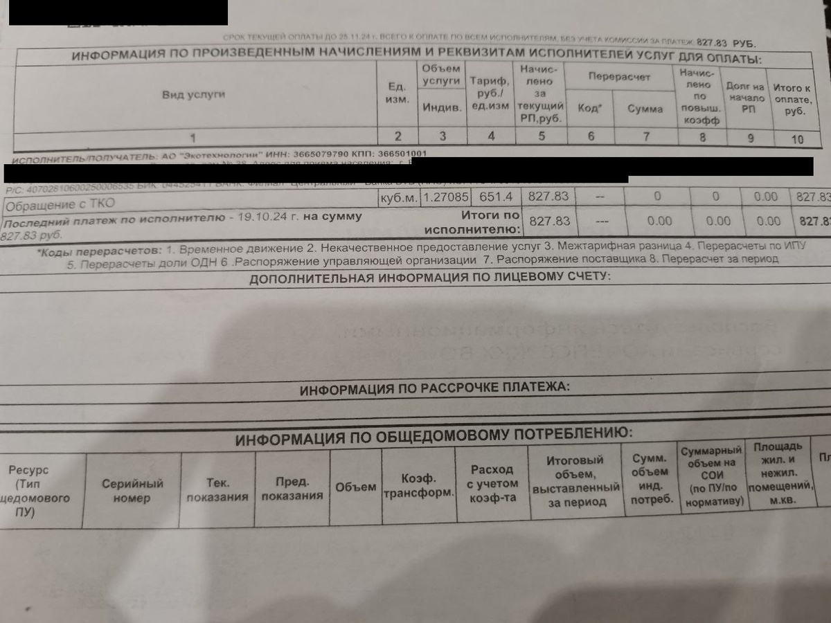 Воронежцы из дома №7 на бульваре Победы сообщили о росте платы за вывоз мусора. Что октябрьская, что ноябрьская квитанции пришли на сумму 827 рублей. «Пошел второй месяц после обращения в надзорные органы, а воз и ныне там. Очередная квитанция на оплату за вывоз ТБО с умножением на 3 с плюсом», – жалуются местные житель. Ситуацию нам разъяснили регоператор. «С 1 сентября 2024 года плата за услугу «Обращение с ТКО» начисляется не по площади, а по количеству проживающих (собственников, если отсутствуют прописанные граждане) согласно Новым Правилам коммерческого учета, утвержденным ПП РФ от 24.05.2024г. №671 «О коммерческом учете объема и (или) массы ТКО». В данном случае начисления производились на 5 проживающих на основании предоставленных УК данных», - пояснили в «Экотехнологии». Филипп Котов