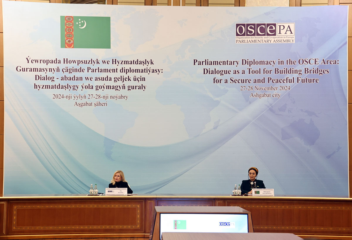 Вчера в столичном отеле «Ýyldyz» стартовала 2-я Ашхабадская конференция «Парламентская дипломатия в пространстве ОБСЕ: диалог – инструмент установления сотрудничества для благополучного и мирного будущего», организованная Меджлисом Туркменистана совместно с Парламентской Ассамблеей Организации по безопасности и сотрудничеству в Европе (ПА ОБСЕ). Главная цель мероприятия – укрепление регионального диалога, содействие и продвижение всеобъемлющего подхода к обеспечению безопасности, прочного и устойчивого мира во имя благополучия будущих поколений. В конференции приняли участие Председатель и депутаты Меджлиса Туркменистана, представители столичных вузов, СМИ. Для участия в форуме в Ашхабад прибыли Президент ПА ОБСЕ Пиа Каума; Специальный представитель ПА ОБСЕ по Центральной Азии, а также международные эксперты, видные общественные и политические деятели, парламентарии Австрии, Германии, Дании, Италии, Кипра, Норвегии, Польши, Румынии, Франции, Хорватии, Швеции, Беларуси, Кыргызстана, Тад