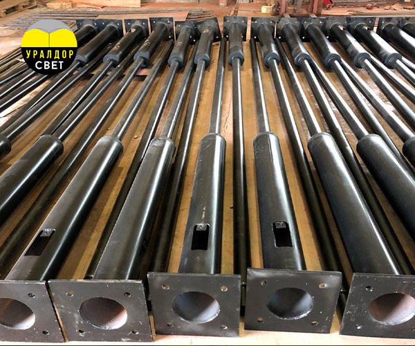 Осветительные опоры, на которых размещают световые приборы для городских улиц, изготавливаются из различных материалов и имеют разнообразные формы поперечного сечения. У нас также представлены модели с разными способами установки в грунт. Грамотный выбор опоры обеспечивает удобство монтажа и надежность её дальнейшей эксплуатации. В России для строительства систем уличного освещения используются три основные типа стальных опор. Также существуют разные способы установки опор. Существуют следующие варианты: Прямостоечные опоры – маркируются литерой «П». Эти опоры устанавливаются непосредственно в котлован с помощью хвостовика. Для монтажа бурится отверстие, а затем в него вставляется хвостовик, который заливается бетоном. Таким образом, сам ствол конструкции имеет дополнительную часть — хвостовик, который погружается в землю. Эти опоры дешевле фланцевых, поскольку не требуют дополнительных фундаментных деталей, но их невозможно демонтировать без разрушения основания. Фланцевые опоры – ма