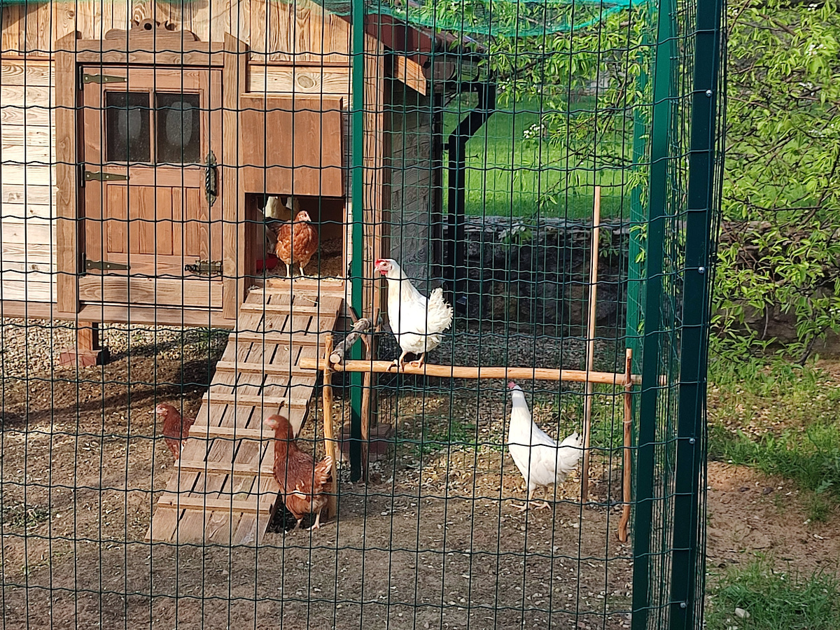 Опять начался процесс адаптации и воспитания. Новые жильцы как-то не очень хотели приучаться к насесту и, по сравнению с нашими первыми курочками, вели себя гораздо более настороженно и обособленно. Чтобы упростить процесс приучения к насесту я оборудовал в вольере места для сидения и периодически подсаживал на них кур, что было проще, чем проделывать тоже самое в курятнике. Процесс неплохо шел с итальянками, а вот с немками как-то не получалось. На улице они сидели, а вот в курятнике нет. И я по вечерам наблюдал, как они втроем сбиваются в кучку в углу и так и спят, тесно прижавшись друг к другу. С одной стороны, умилительная картина, но с другой она свидетельствовала о том, что есть у них какой-то дискомфорт.