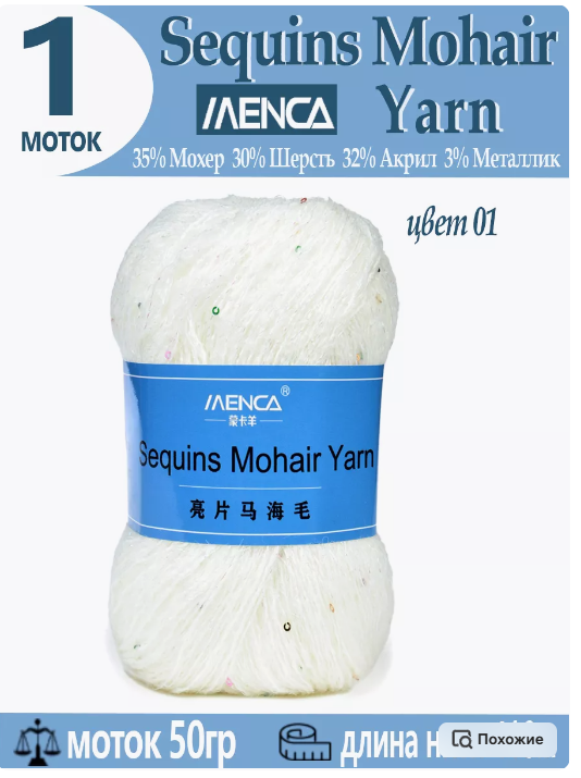 Приветствую всех любителей кукол, до Нового Года осталось всего ничего, так что уже пора начинать готовить красивые наряды. В поисках пряжи на ВБ наткнулась вот на такой моточек, отзывов на момент покупки практически не было, так что ориентировалась только на общую характеристику: ниточка с люрексом и маленькими пайетками размером около 2 мм, вес 50г, длина 410 м, состав виден на фото. По весу и длине было понятно, что ниточка должна быть тоненькой и вполне подойти для кукол до 16 см. немного отвлекусь и расскажу о пряже, из которой люблю вязать для маленьких кукол, чтобы вы наглядно могла увидеть, что найденные мной нитки тонкие и действительно подойдут для маленьких кукол до 16 см Из аналогов у меня HiMALAYA LANA LUX 100г 800 м, слонимская 50г 404 м, возможно, Лидия бобинная 100 г 1600 м в 2 нитки. Я пользуюсь Слонимской ( просто потому, что для меня это самая доступная и самая дешевая пряжа), нитка в мотке хоть и заявлена, как 202 м на 50г, НО сама нитка без скрутки и легко разма