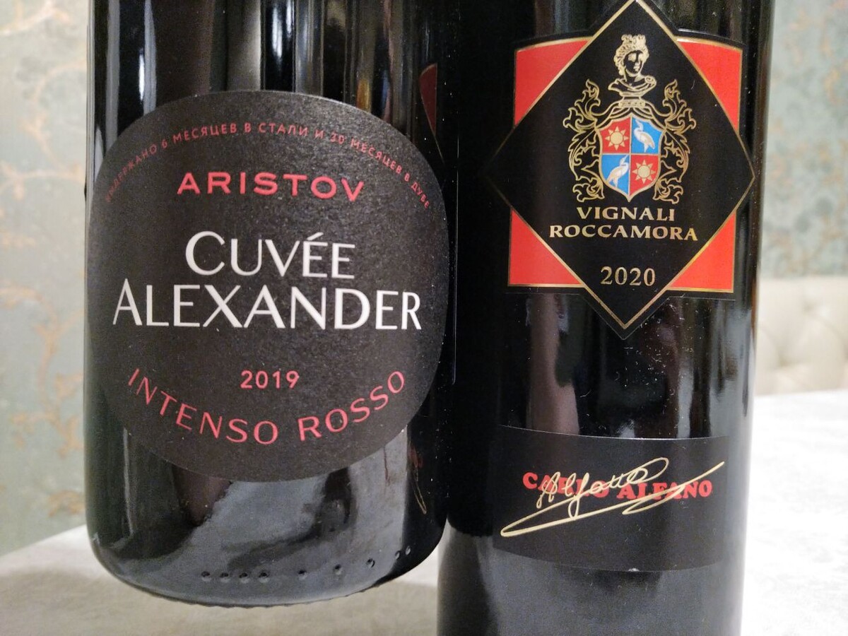 Первое из вин в заголовке - российское, от "Кубани-Вино". Cuvee - следуя мировой традиции использовать в виноделии французские термины. Intenso Rosso - следуя мировой традиции писать термины по-итальянски потому что создавалось в сотрудничестве с итальянскими энологами. Ну и Aristov латинскими буквами, потому уже известная торговая марка и не русскими же писать. Это "Макдоналдс" писал свой бренд по-русски, что с него взять, тем более, что его уже и нет. Моё отношение к этикетке - это одно, а к вину - другое. Вино, между тем, обещало быть интересным. Сорт анчелотта - уже любопытно. Мало, где его встретишь, а "Кубань-вино" не только сухое, но и ликёрное из него делает, которое меня в своё время поразило, дам ссылку внизу. Обозреваемое "Аристов" - вино урожая 2019, розлива август 2024. В Винлабе оставил за него 1260 р. Так оно несколько дороже, если без скидок. Бутылка красива оформлена, чёрно-красный стиль, скоро станет понятно, почему. Горлышко залито мягким пластиком. Сравнить было бы