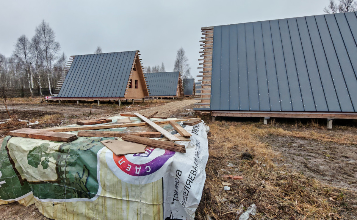 Только справа слышится звук дрели. Там возводились А-фреймы. Предполагалось, что эта часть будет коммерческой зоной, — домики можно будет арендовать на случай, если к жителям поселка приедут гости.