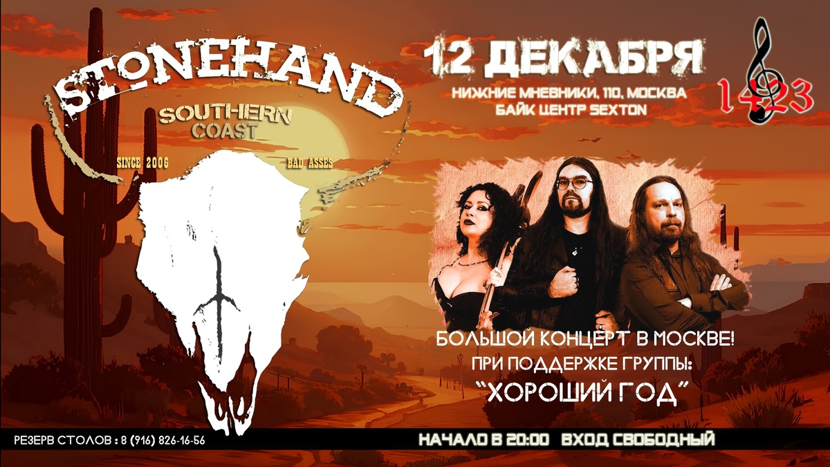 Не упустите возможность стать свидетелем незабываемого концерта группы Stonehand в Москве! Уже 12 декабря в «Студии 1423» мотоклуба «Ночные Волки» вас ожидает грандиозное выступление ветеранов «южного» хард-рока.