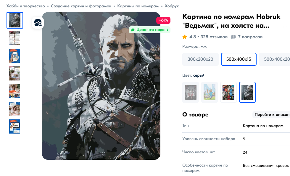 Честно говоря, я даже и не помню, сколько Ведьмаков уже рисовала. Тем не менее, большинству друзей нравится подобная тема, посему у меня на обзоре - очередная картина с данным персонажем. Посмотреть старые работы туть: А мы начинаем. Первое, что хочется отметить. Я честно люблю Hobruk и их сюжеты. НО. Как только вопрос касается лака для картины, всегда всплывают нюансы. Наносить его тяжело + он совершенно меняет облик картины. И если например для себя я могу решить этот вопрос, то в подарок уже приходится советоваться. Тем не менее, данная картина меня привлекла и как будто пообещала "хэй, если покроешь меня лаком, будет ярко!". Но прежде чем подводить итоги, предлагаю ознакомиться с тем, что приехало. Первой проблемой будет их упаковка. Она всегда "так себе", но как правило, до меня доезжает все в целости. Конечно, если Вы планируете это подарить "как есть", то могут остаться неприятные впечатления. Кисти - как обычно, слишком странные, неудобные, требующие похода к парикмахеру. Холст