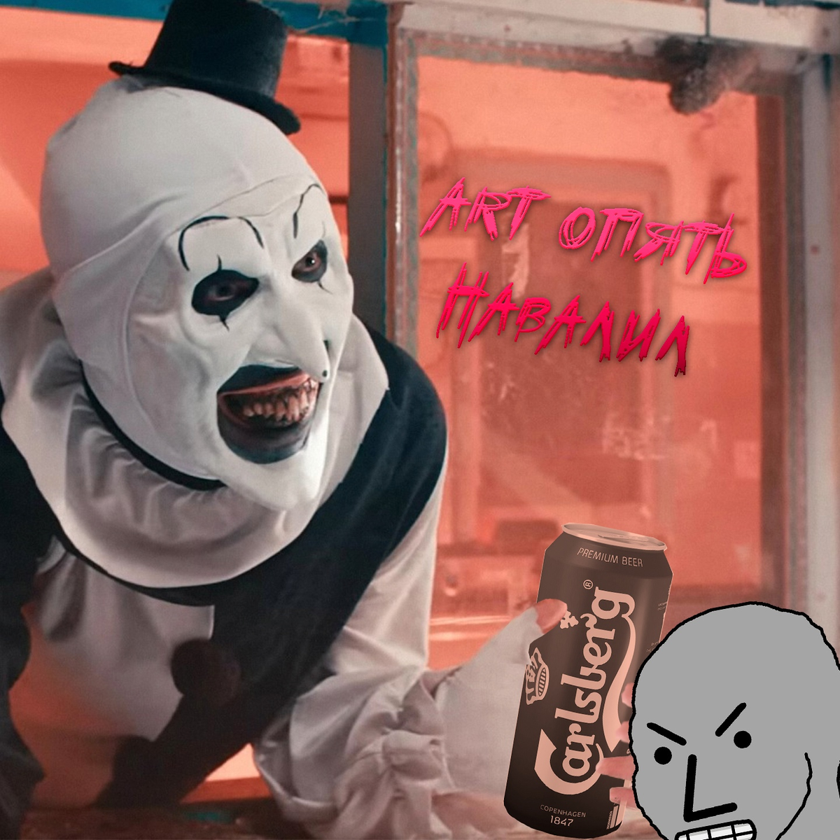 С чего же стоит начать?! Ну давайте обратимся к тому, за что вообще смотрят эту франшизу: треш, угар, мясо, сиськи, письки, рвотные массы. Тут новая часть определённо прыгнула выше головы. Хоть и все предыдущие изобиловали наличием ливера и атмосферой язвенного скотомогильника, но в третьей части это доведено до максимума. Если добавить больше жести, то получится 2 часа фильма про вытаскивание кишок. Не знаю даже как оценивать всё-таки это главная фишка фильма... Наверное, для любителей снаффа Ужасающий то, что нужно. Короче молодцы, апнули возрастной рейтинг 88+. Да и харизма Арта не просела, за его кривляньями и безмолвными смешками всё так же забавно наблюдать.