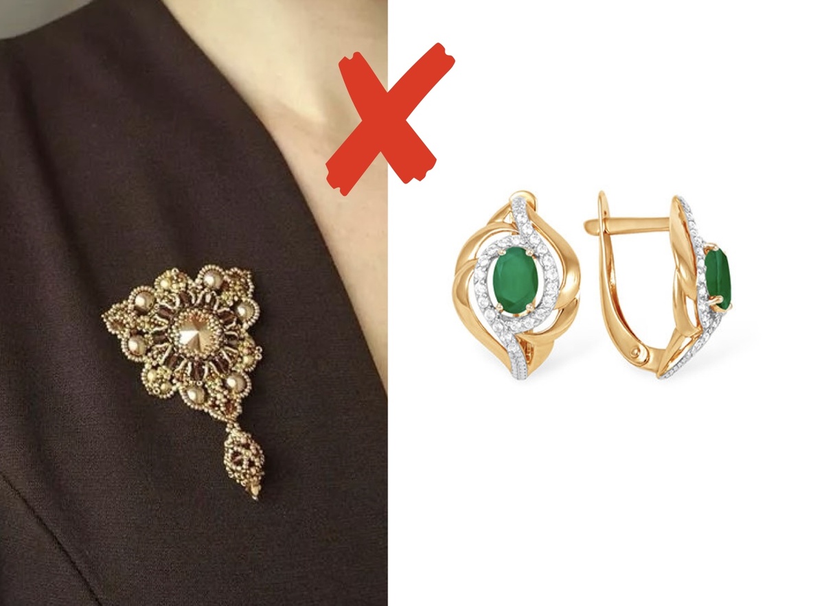 Не стоит носить украшения комплектами - условно, серьги, колье, а еще и браслет из одного комплекта одновременно в одном образе.