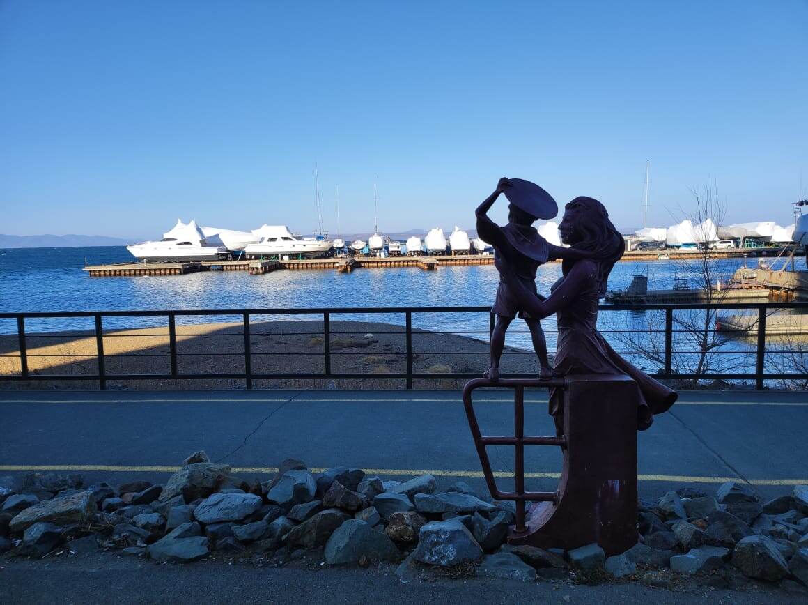 Это напротив памятника С.Г. Лазо, которого во Владивостоке очень любят, недалеко от Арки цесаревича.