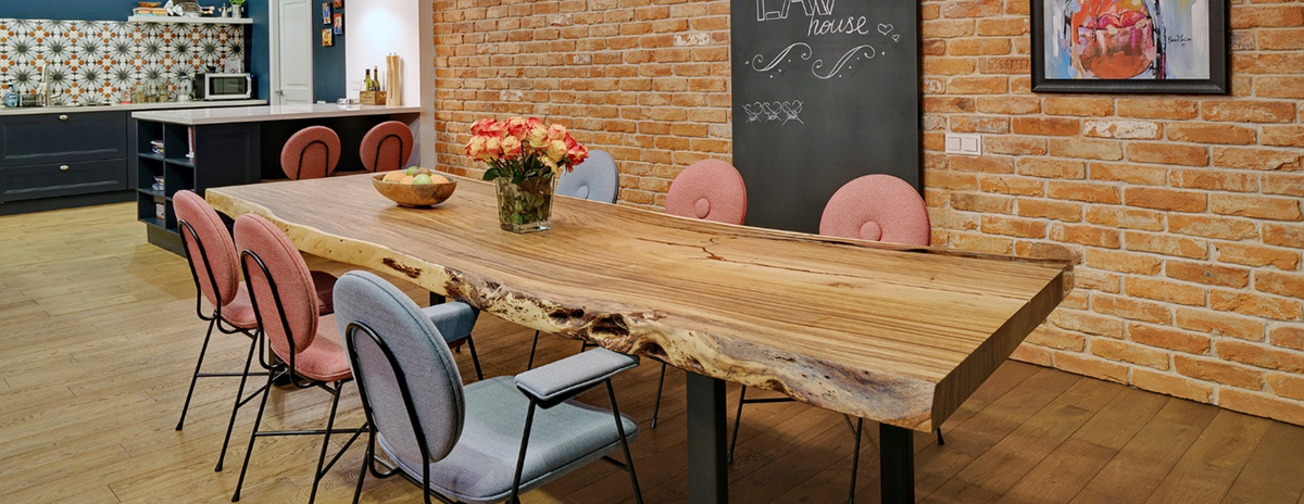 и материалы, которые вдохновляют Сегодня мебель является не просто функциональным компонентом интерьера. Это важный элемент, который формирует атмосферу в пространстве, задает объем и динамику. В эпоху эко-идеологии, одними из самых стильных и востребованных решений для современного интерьера являются изделия с сочетанием природных материалов и современных технологий, такие как столы – центр притяжения обеденной зоны и рабочего кабинета - о них сегодня и поговорим! Массив дуба — это материал, который уже веками используется в мебельном производстве. Его естественная фактура превращает каждую деталь в произведение искусства. Однако дуб сам по себе может быть довольно тяжёлым и не всегда подходящим для современных интерьеров, требующих лёгкости и изысканности. Здесь на помощь приходит эпоксидная смола, чёрный цвет которой контрастирует с тёплым оттенком дерева и добавляет глубины. Процесс работы с эпоксидной смолой — это настоящая магия. Смола заполняет