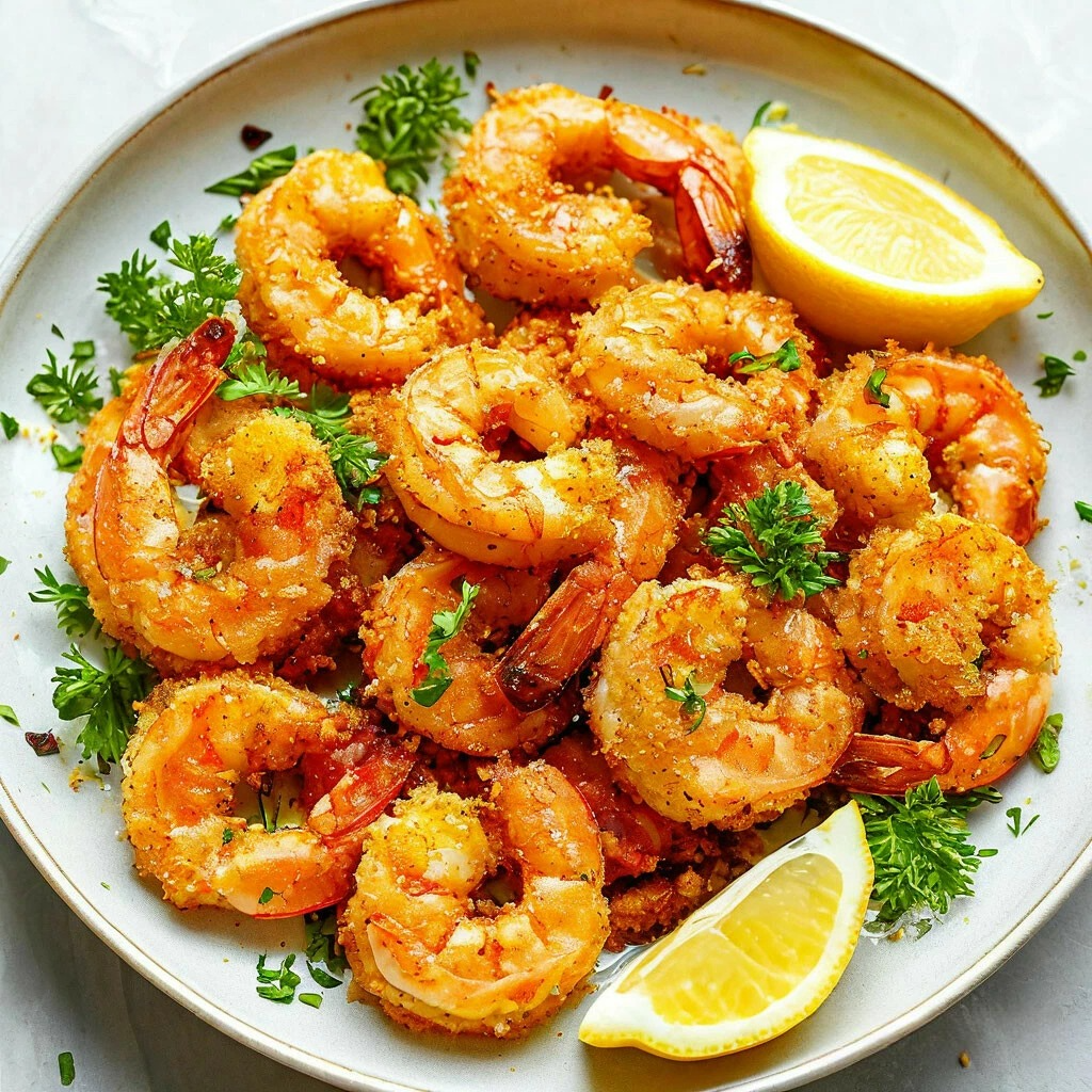 Жарьте креветки партиями по 3-4 минуты с каждой стороны, пока они не станут золотистыми и хрустящими. Не перегружайте сковороду, чтобы креветки жарились равномерно. - Подача: Выложите готовые креветки на бумажное полотенце, чтобы удалить лишнее масло.