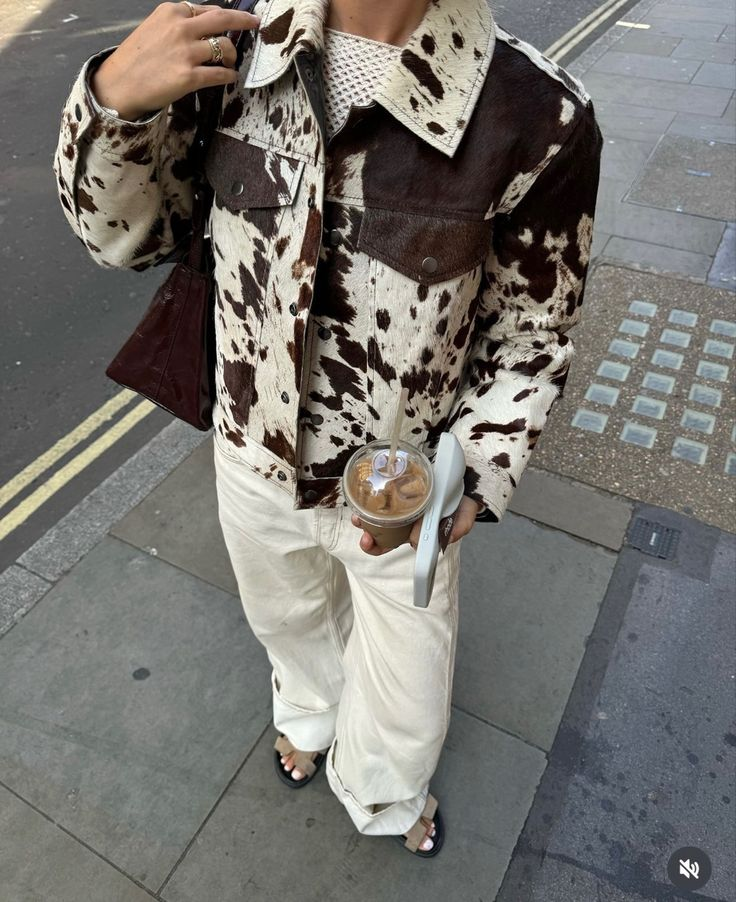 Ох уж эти стилисты! Ох уж эти затейники! Не дают нам расслабиться. Ещё совсем недавно мы гонялись за вещами с леопардовым принтом, а теперь нам предлагают переключить своё внимание на коровий узор. Сейчас он находится на передовой позиции всех трендов и есть у всех главных модниц. Что это – шок или шик? Пора разобраться, как корова перебралась из сельской местности в глянцевые журналы, подиумы и повседневную одежду. Все было не просто так, коровушка не внезапно появилась на модном горизонте. Ее приход был ожидаем. Незадолго до ее появления уже были в тренде казаки, замша, сумки с бахромой, ковбойские шляпы. То есть – все атрибуты вестерна. А как же ковбою без коровы? Как видите – никак. К тому же, она весьма кстати вписывается в актуальную экологическую повестку. Как мы ранее отмечали, мода уже перестала быть просто про одежду, она стала социально ориентированной. Так что просим не то чтобы любить, но хотя бы присмотреться к нашей сегодняшней героине. Она действительно очаровательна.
