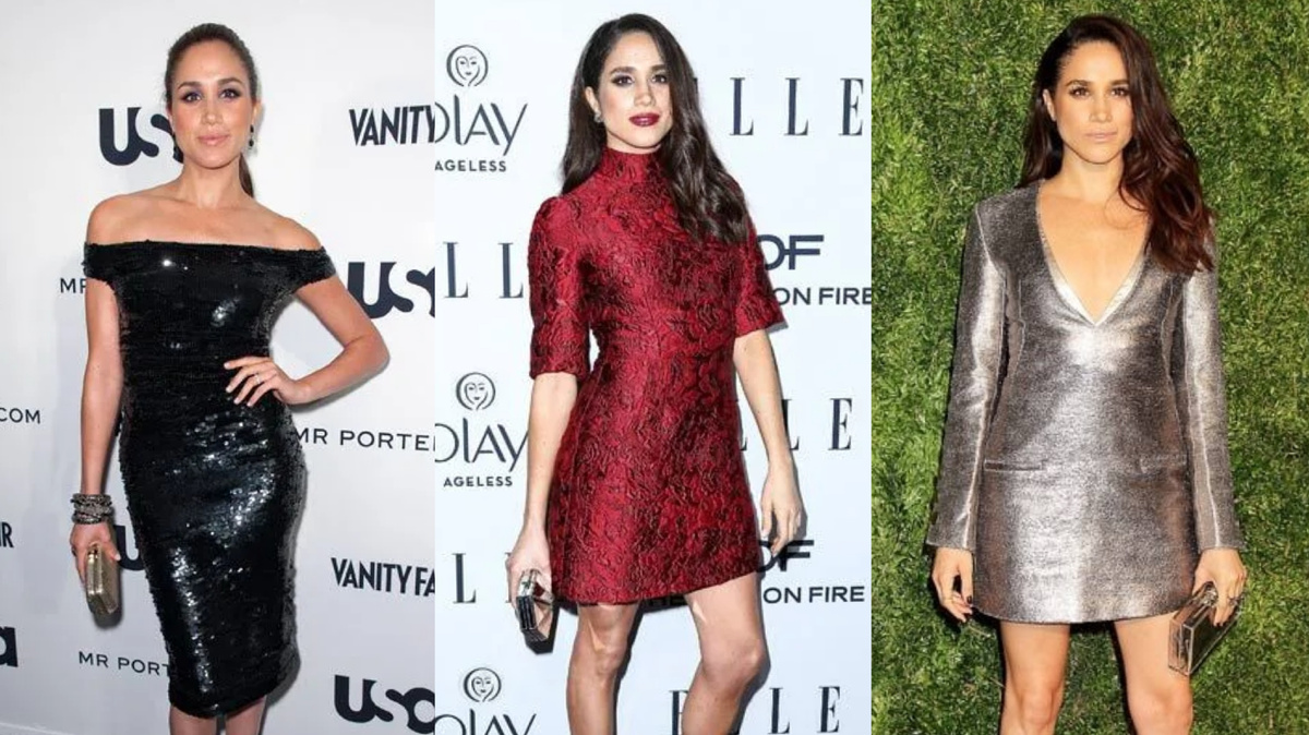 Бывшая простая девушка Меган Маркл теперь герцогиня Сассекская, но это не значит, что мы должны забыть о ее предыдущей жизни в качестве актрисы из списка A-list. Меган прославилась, сыграв Рейчел Зейн в драме "Форс-мажоры", и в свое время не раз появлялась на красных дорожках - от кинопремьер до Недели моды. И хотя в ее новом гардеробе произошли изменения, мы видим сходство между ее образами на красной дорожке и королевским стилем. Мы собрали ее фирменные образы на красной дорожке: от мини-платьев до комбинезонов и кожаных брюк... Ее губная помада сочетается с цветом платья. Шикарное выход в черном платье с открытыми плечами. Меган добавила к нему золотое ожерелье и босоножки цвета нюд. Леди в красном! В этот вечер все внимание было приковано к Меган. Она сочетала красное платье, золотые туфли и объёмную черную сумку. Меган выглядела очень женственно в бордовом платье, к которому она добавила контрастную сумку и кружевную обувь. Меган выбрала светлый, но интересный образ. Ее отте