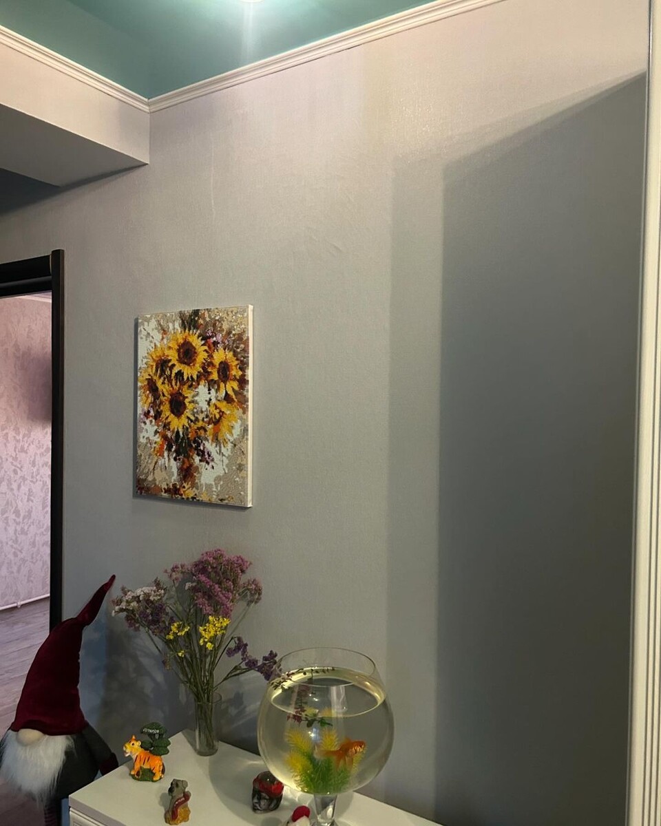 Комментарий: Стены вообще не готовы, под эти обои нужна подготовка стен, клей наносить нужно и на стены и на обои.