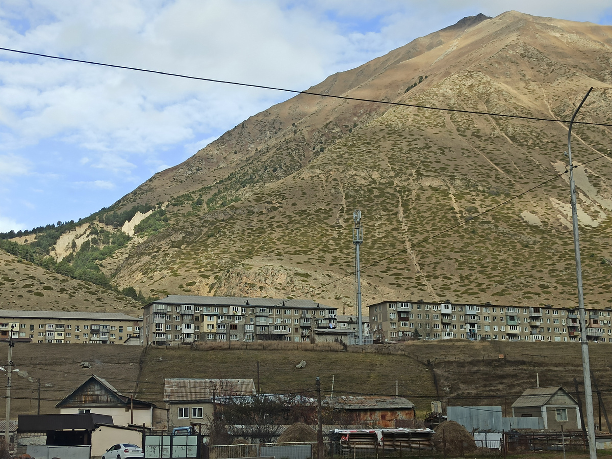 Ярким впечатлением была поездка через село Нейтрино. Название мы такое слышали, но когда узнали, что это то самое место, где физики изучают солнечные нейтрино, стали смотреть подробные видео на ютуб. “Село основано в 1977 году при начале строительства Баксанской нейтринной обсерватории. За несколько лет под горой Андырчи был пробит тоннель длиной в 4 км, в котором были установлены детекторы, измеряющие поток нейтрино, идущий от Солнца. Эта обсерватория представляет собой специализированный комплекс подземных лабораторий для экспериментальных исследований по ядерной физике и астрофизике.” Взято из Википедии Большинство жителей Нейтрино это сотрудники обсерватории и их семьи. Но квартиры охотно снимают и туристы, из-за удобного расположения к Эльбрусу и горе Чегет. Побывали аж в двух “мертвых городах”. Один некрополь был доступен по билетам (символическая плата, но зато была стоянка, туалет и кафе). Ниже на фото захоронения в Даргавсе, на горе Раминыраг (Северная Осетия). Первые зах