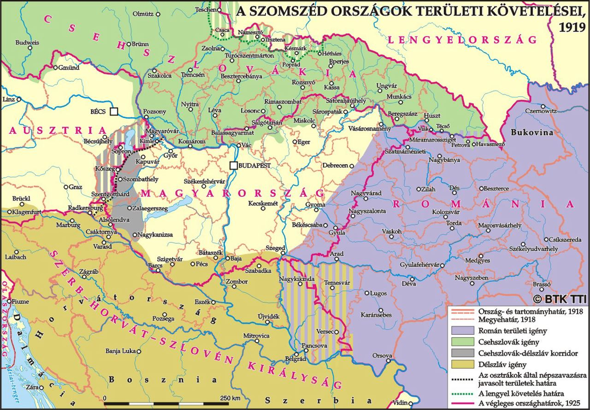 Это продолжение цикла о формировании современных границ Венгрии. Начало – здесь. Трианонский договор был подписан Венгрией не то, чтобы с пистолетом у виска (как Брестский мир Россией). Тем не менее, фактически венграм пришлось подписать готовый документ – Антанта шла на уступки только по незначительным вопросам, к числу которых территориальные не относились. Шопрон удалось вернуть только благодаря мятежу сброда под командованием серийного убийцы. А вот мечты Чехословакии и Югославии о создании «бургенландского коридора» (серым на карте ниже) пресекла Антанта: Как бы то ни было, восстановление дотрианонских границ было национальной идеей на протяжении всего межвоенного периода. Этнографическая карта Венгрии 1927 г. говорит о том, что новые границы не особо-то и признавали. Впрочем, массив данных был собран еще до войны – не пропадать же добру: Для предотвращение венгерского ирредентизма Франция сколотила Малую Антанту из Чехословакии, Румынии и Югославии: Венгрия же, стремясь выйти из