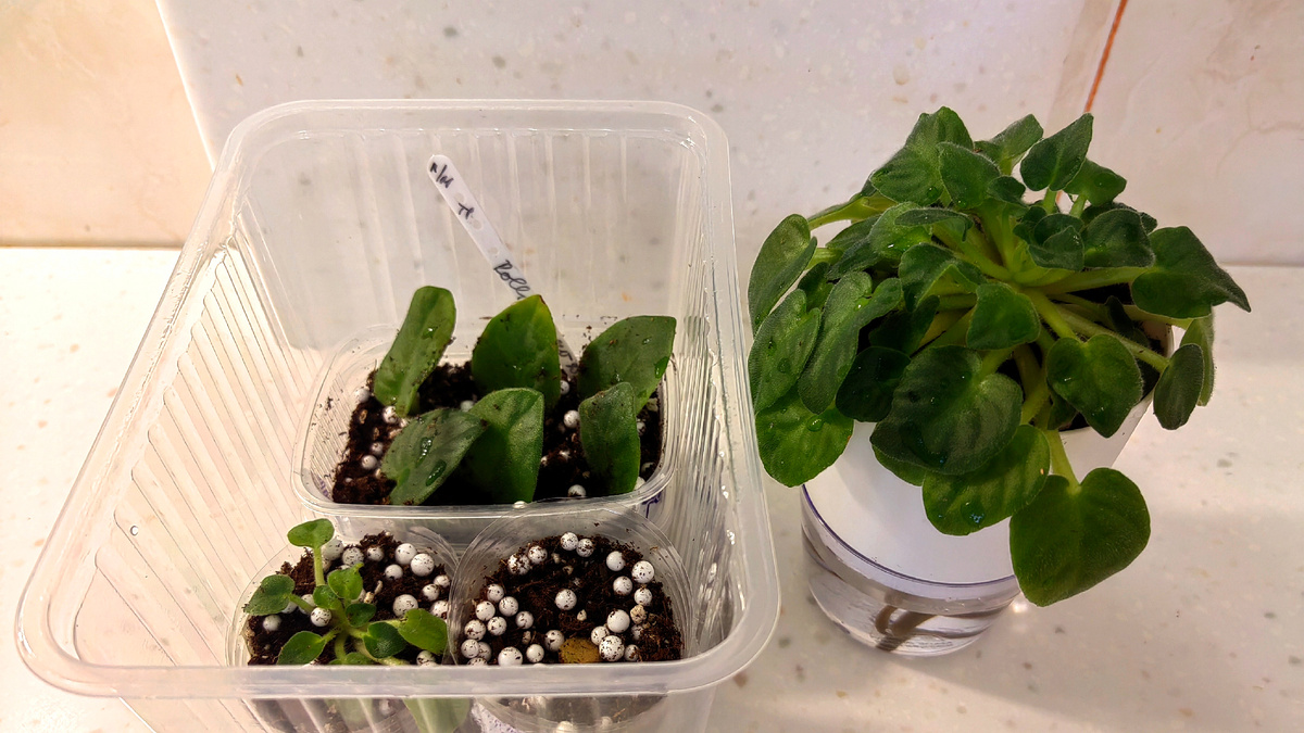 У этой фиалки была серьезная проблема. Даже не ожидала, что она пойдет от корня. Так что приём годен в самых отчаянных ситуациях, когда фиалка на грани (если корневая система не сгнила).