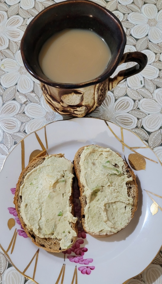 Утром приготовила себе еду,подсчитала, и оказалось, что почти на 1200 калорий. Для меня это вполне достаточно. На завтрак доедала пшенно- тыквенную кашу - 200 г. Из авокадо и творога из ряженки сделала намазку. Покупаю часто авокадо, кладу в холодильник и забываю про него. Пока не начинает портиться. Поэтому в этот раз своевременно решила использовать. И на завтрак сделала два бутерброда . И кофе с молоком. Завтрак получился на 344 кал На перекус решила приготовить что-нибудь новенькое. Сделала шарлотку в микроволновке. Но не из яблок, а из груш. Так как яблок в наличие не оказалось. А в погреб за ними ходить времени нет. Пишу рецепт шарлотки. Груша - 100 г Кефир 2,5 % - 50 г Мука рисовая ц/з - 30 г Яйцо - 1 шт - 56 г Разрыхлитель 0,5 чл Поставить в микроволновку при мощности 800 на 4 минуты. Отлично все пропеклось. Решила еще крем сделать. Смешала 30 г кефира и 30 г Обезж. творога и 1 мерную ложку с/з Разрезала на две части и намазала кремом. Для меня и по калорийности и по объему