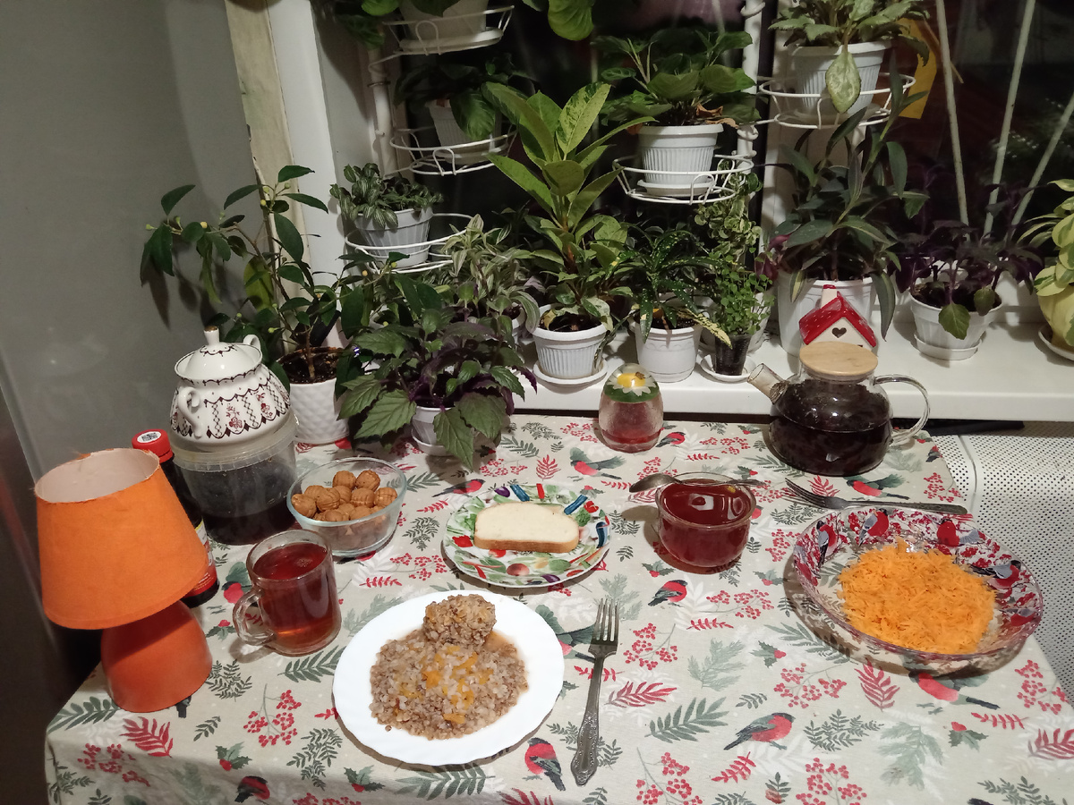 18:45. На ужин сын попросил картофельное пюре с гречаником.