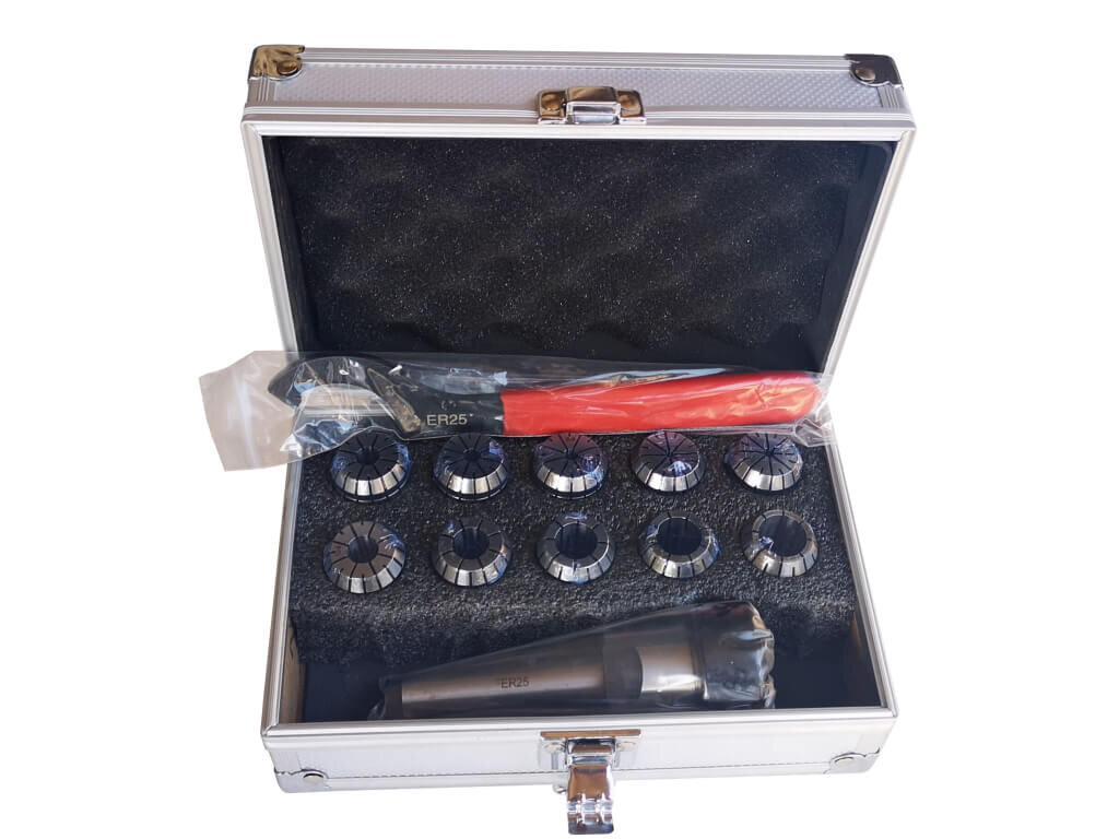 - Универсальность применения. Комплектация наборами сменных цанг, перекрывающими весь необходимый диапазон размеров. Это позволяет оптимально подобрать зажимной элемент под конкретную задачу. При выборе важно учитывать не только номинальный диаметр, но и допуск на изготовление хвостовика инструмента или размер обрабатываемой детали. Для обработки стали и чугуна применяются цанги с повышенной жёсткостью конструкции и износостойким покрытием рабочих поверхностей. При работе с цветными металлами и сплавами используются цанги с оптимизированной геометрией лепестков.