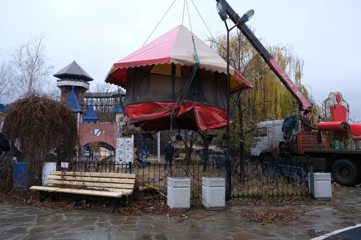 Ранее собственник, которым является Олег Сарычев, самостоятельно вывез 7 сооружений. Еще 3 демонтировано сегодня. Он также выставил на «Авито» объявления о продаже животных из живого уголка парка.