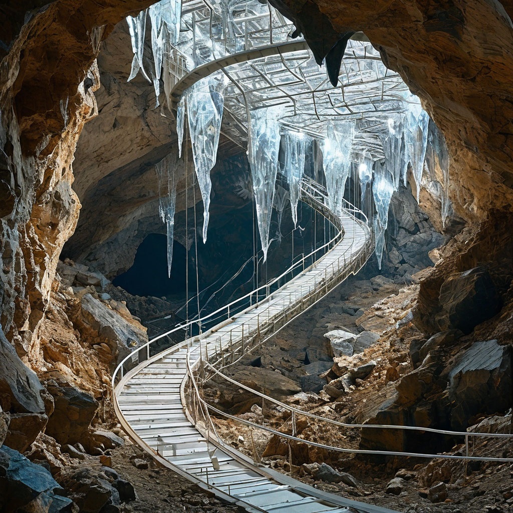 Девушка вышла следом за мужчинами из помещения. Первая, что она увидела, был небольшой трап, ведущий от помещения к большому кубу, зависшему в воздухе. Девушка и сопровождающие находились в широком туннеле. Вверху свод был так же освещен множеством объектов. Отдалённо это было похоже на большие кристаллы, что торчали из земной тверди. Как и в прошлый раз, среди них Лена заметила несколько движущихся объектов.
