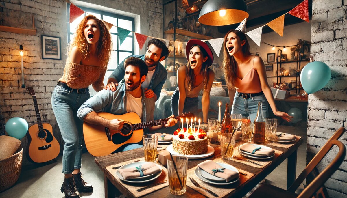 Саша пришёл с гитарой и заявил, что день рождения — это отличный повод для «его нового выступления».
