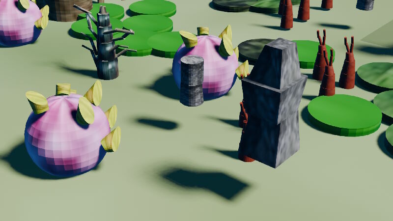 Трехмерная сцена на сегодня по мотивам странной планеты. Какой-то странной планеты. Другая планета. На которой все по-другому. Кажется, еще была какая-то компьютерная игра про мутантов Evolve. Но я в нее не играл. Эта странная планета. Она болотистая. И тут теплое солнышко. Климат теплый. Даже жаркий. И много зелененого и болотного. Растут какие-то грибовидные штуковины. Есть грибы. Есть дерево. Все зарастает грибами. И грибовидными растениями. Холмов не много. И на них тоже возвышаются шаровидные грибы. Все вокруг наполнено насекомыми. Кажется, квакают лягушки. И кузнечики поют свои песни. Но их не видно. Есть места, где потише. Чем-то, даже, похоже на планету Земля. Только тут все в грибах. Как таковой суши здесь мало. Вероятно, должны быть целые поля. С насекомыми. А так много болотистой почвы. Все немного в воде. Много ряски повсюду. И зелёной травы. Тут летают птицы. И лягушки строят свои домики из дерева. Заброшенные домики быстро зарастают шаровидными грибами. Лягушки умные и до
