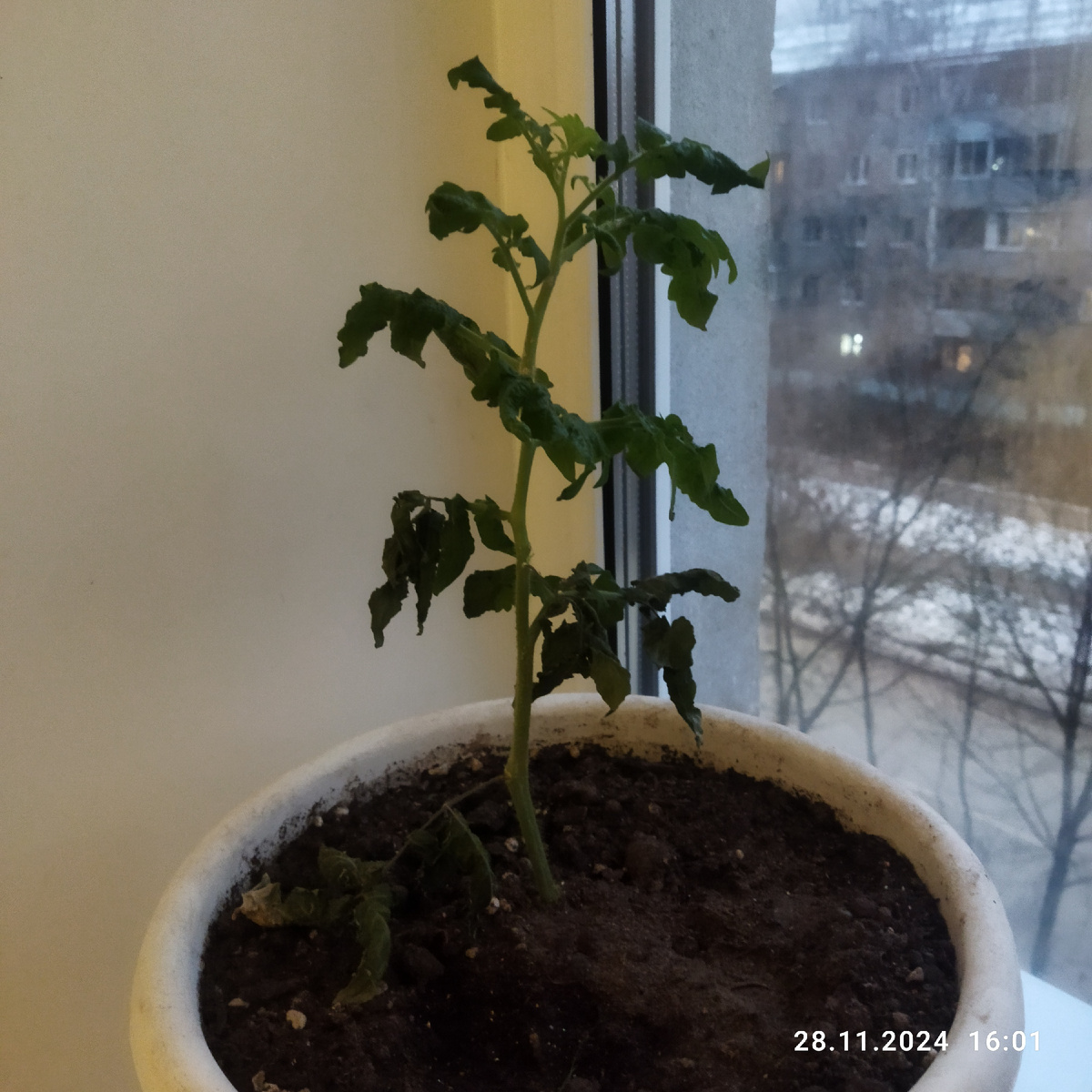 Пасынок от "жирафа". Dwarf Pit Viper, томатный гном Гремучая змея. Который в рассаде завершковался. Простоял всё лето на балконе в квартире. Вырос до потолка и пошёл расти параллельно. К сентябрю решил выпустить цветущий пасынок ⬆️ который при укоренении цветки сбросил. Зачем сейчас растет? На пустьрастет - горшок есть. Окно свободное. Не перед глазами.
