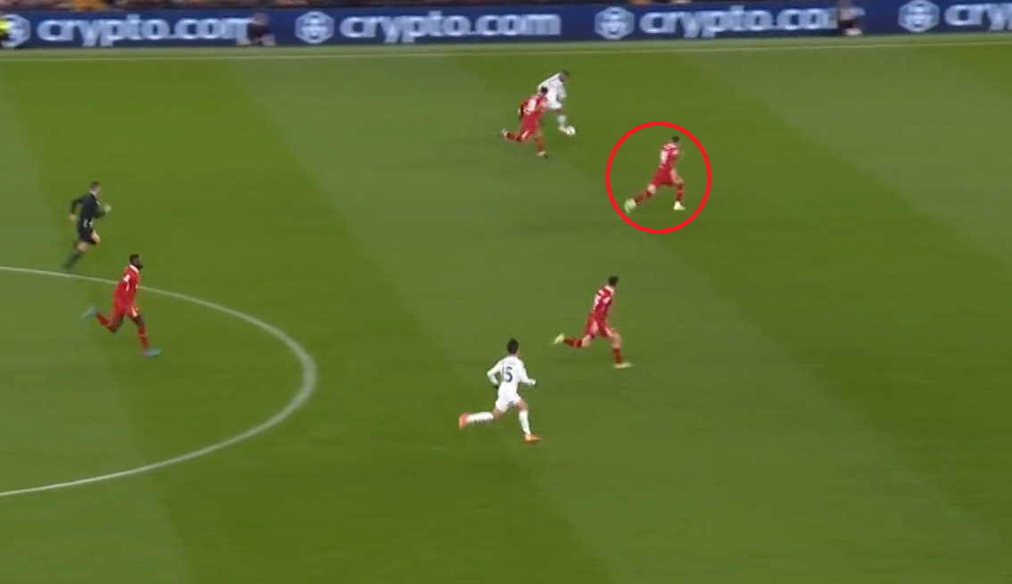 Затем отпасовал партнеру, который начал новую атаку «Ливерпуля», после которой Дарвин Нуньес едва не забил – мяч после его удара пролетел рядом со штангой.