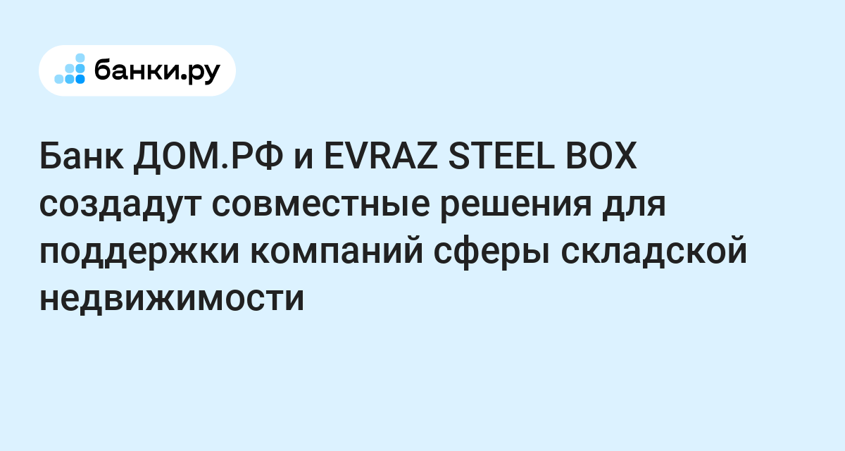 Банк ДОМ.РФ и EVRAZ STEEL BOX создадут совместные решения для поддержки компаний сферы складской недвижимости